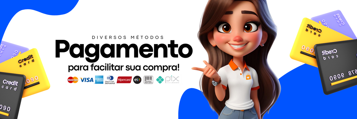 Oferecemos uma ampla variedade de opções de pagamento, incluindo cartões e carteiras digitais, com checkout intuitivo e seguro.