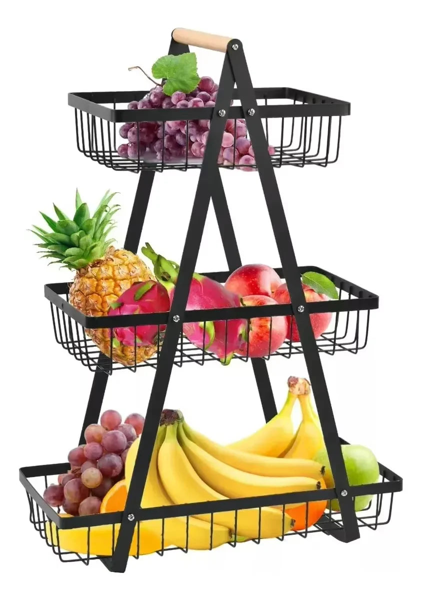 Design Prático e Moderno: Com 3 andares espaçosos, permite organizar diferentes tipos de frutas e legumes, mantendo tudo visível e ao alcance das mãos.