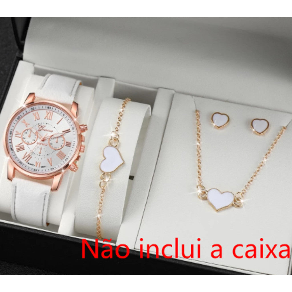 Cada conjunto traz um pingente em formato de coração (nas cores branco e preto) e uma borboleta delicada, também em tons branco e preto, simbolizando amor e liberdade.