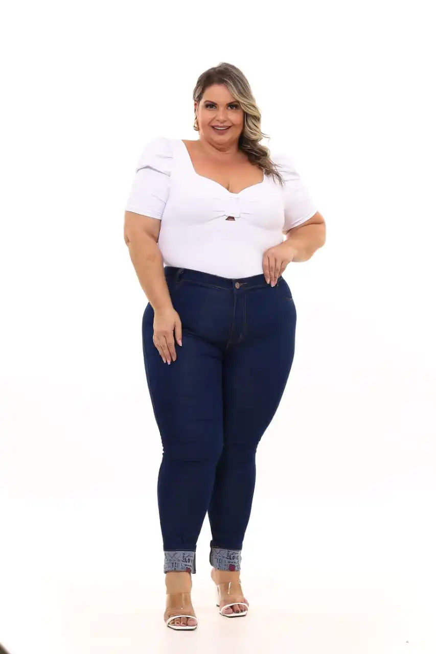 Valorize suas curvas com a Calça Jeans Feminina Plus Size Skinny, perfeita para quem busca estilo, conforto e versatilidade no dia a dia.