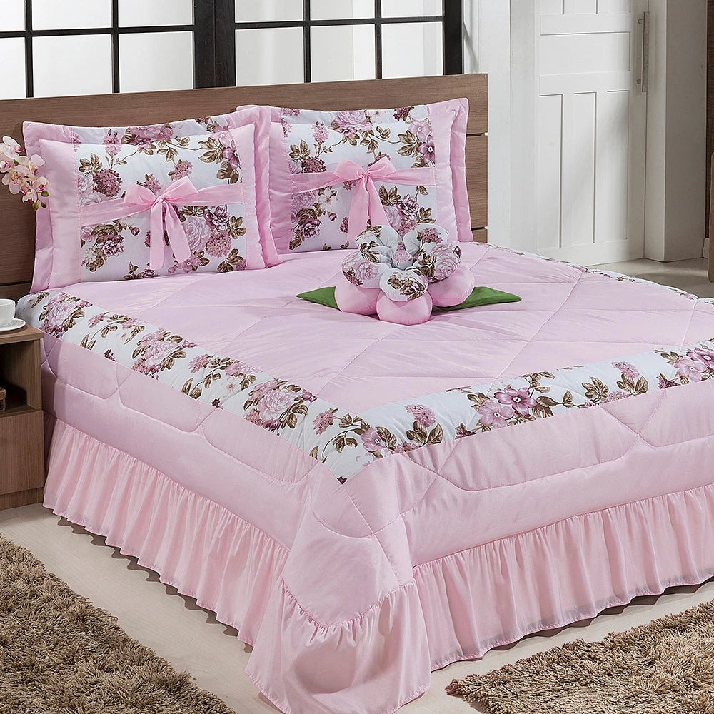 Kit Cobre Leito Casal Padrão com Almofada de Flor 04 Peças